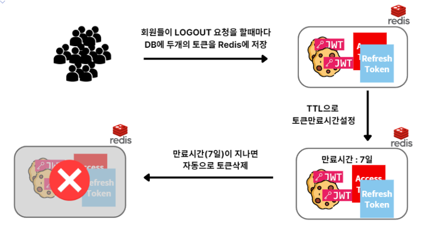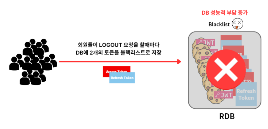 만약 유저가 1만명, 10만명 이라면 로그아웃 요청 횟수마다 DB에 저장되는 토큰은 상상 이상일 것입니다.