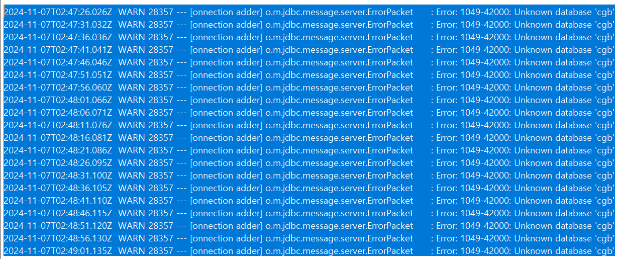 DB의 스키마를 찾지 못한다는 로그를 발견 할 수 있었습니다..