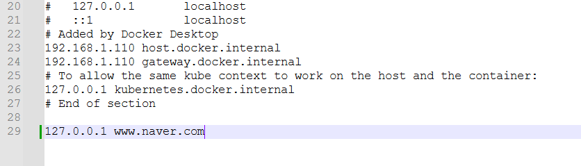하지만 만일 내가 hosts 파일에서 www.naver.com을 localhost로 지정해버리면 어떻게 될까?