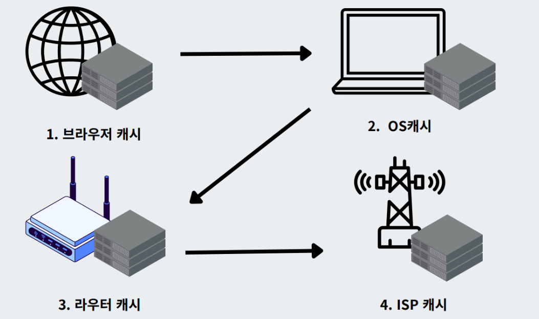 이 외에도 라우터캐시 → ISP 캐시 를 확인 후 실제 DNS 서버를 찾아가는 것이 순서가 되어있다.