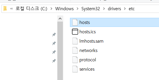 존재여부는 윈도우 기준 c / window / system32 / driver / etc 폴더 밑에 hosts 파일로 존재하게 된다.