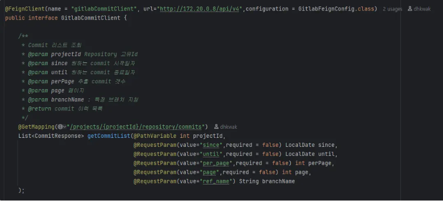 configuration = GitlabFeignConfig.class // GitlabCommitClient - configuration 명시