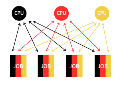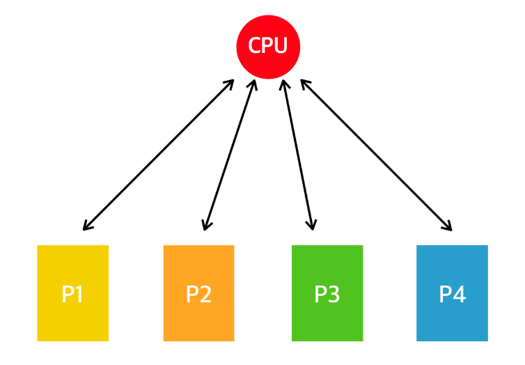 CPU 갯수를 늘리는 것. 즉,멀티프로세싱은 CPU 코어 수와 직접적인 관계가 있습니다. 프로세스를 여러 개 띄워도 CPU 코어가 부족하면 동시에 실행되지 못합니다. CPU가 충분해야 병렬 처리가 의미가 있습니다. 즉, 프로세스를 늘린다고 무조건 성능이 빨라지는 것이 아닙니다. 4코어 CPU에서 10개의 프로세스를 실행하면 결국 컨텍스트 스위칭 오버헤드만 증가할 수 있습니다.